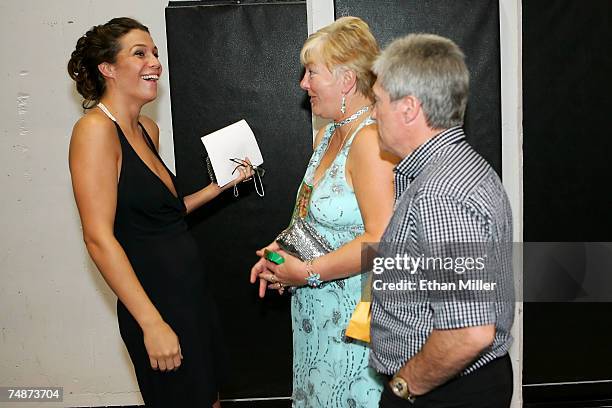 LAS VEGAS – JUNE 23: Jennifer Dooley, the girlfriend of Ricky Hatton, talks with his parents Ray and Carol Hatton after Ricky Hatton of Great Britain knocked out Jose Luis Castillo of Mexico in their junior welterweight bout at Thomas & Mack Center on June 23, 2007 in Las Vegas, Nevada. (Photo by Ethan Miller/Getty Images)